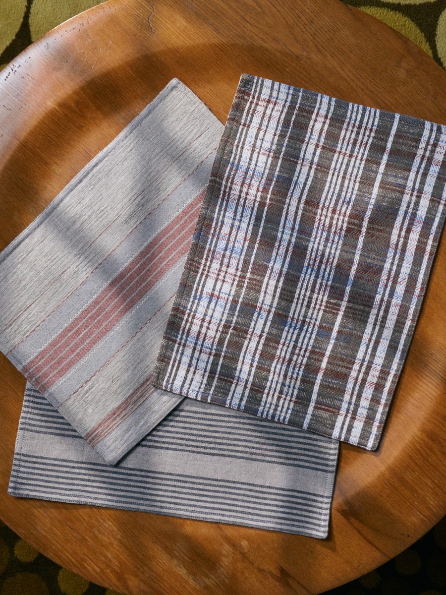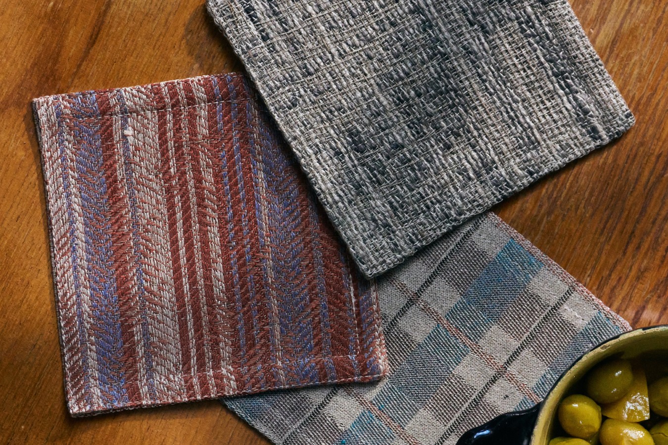 Reversible Coasters in pre-washed linen jacquard motifs made of unique remnants (13cm2)